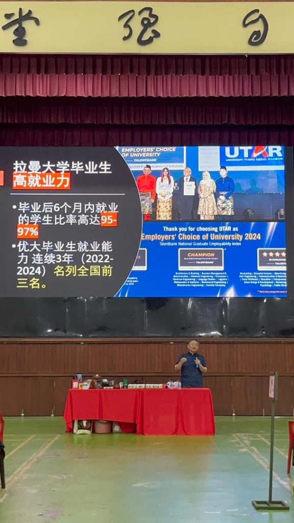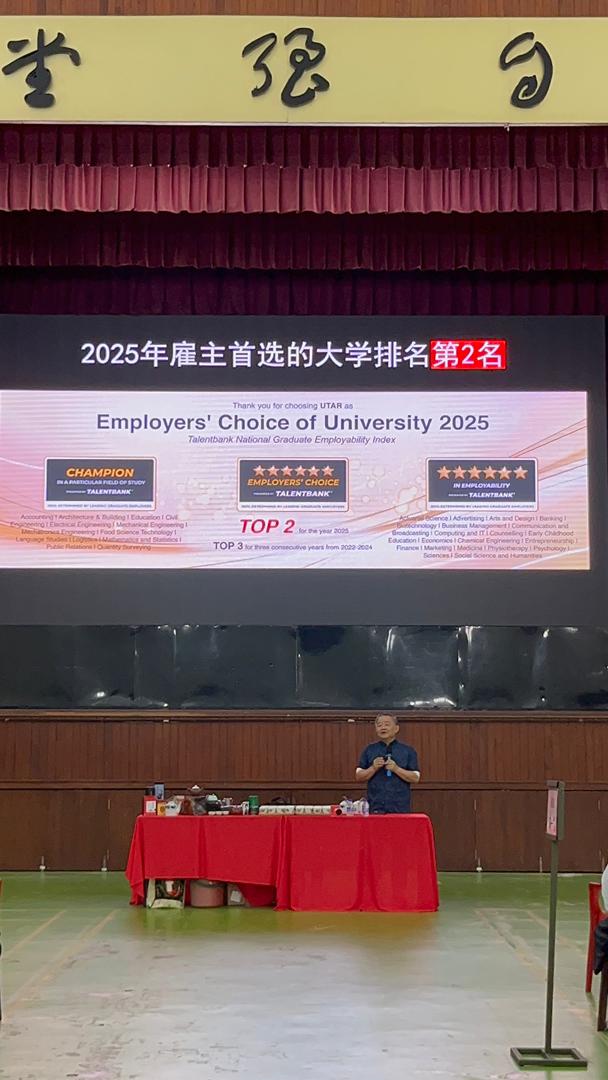 活动首个环节由拉曼大学中华研究学院副教授黄文斌博士主讲。黄博士详细介绍了优大的办学背景、课程特色及学术成就。他强调,拉曼大学始终秉持非营利及“以人为本”的办学宗旨,通过五大方案全方位培育大学生,旨在塑造既具备职场竞争力,又拥有社会责任感与国际视野的时代青年。